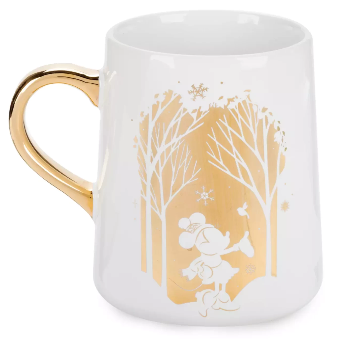 Disney Icy Winter Mickey And Minnie Gold Holiday Coffee Mug New