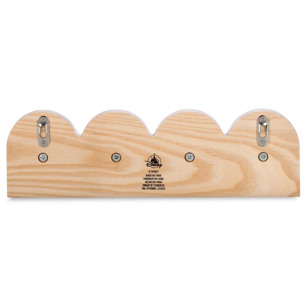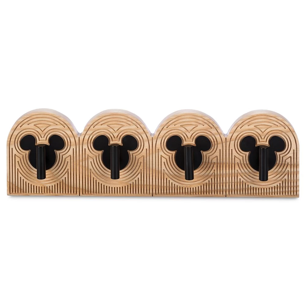Your home will always be more fun with Mickey hanging around. Part of our Mickey Mouse Home Collection, this stylish hook rack features four black metal Mickey icon hooks set within an ash wood base featuring an engraved geometric design.