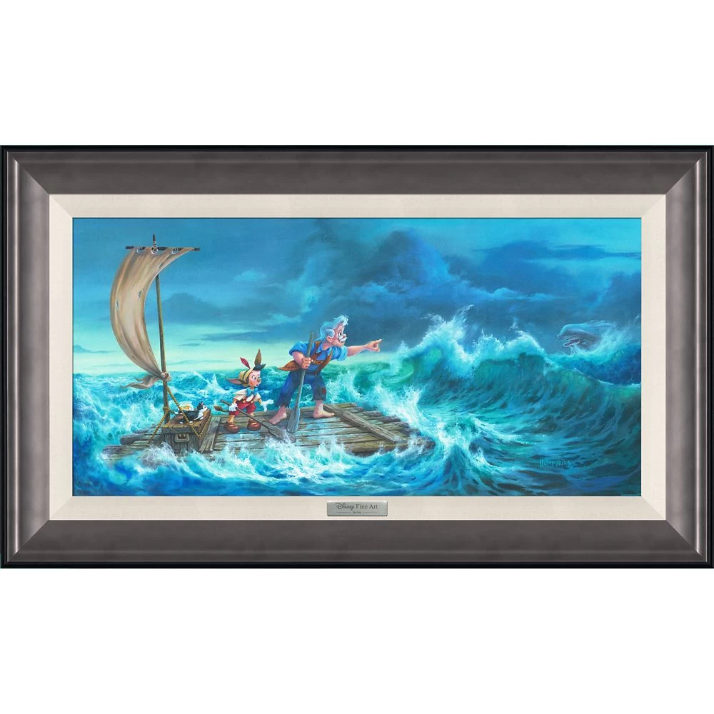 Celebrate the art and legacy of Disney Animation with this limited edition gicleé canvas print featuring Pinocchio, Geppetto, Figaro and Cleo as they confront Monstro the Whale. ”No Escape” by Michael Humphries is fully framed and ready to hang.