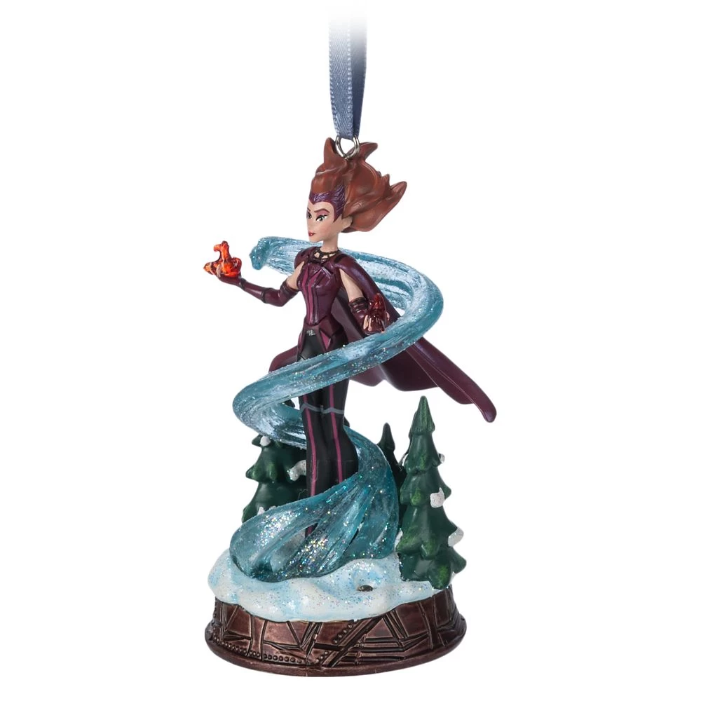 Summon a spell of enchantment this holiday season with Scarlet Witch. This fully sculpted holiday ornament features dramatic recessed lighting from the base that illuminates the translucent power trail surrounding our mistress of magic.