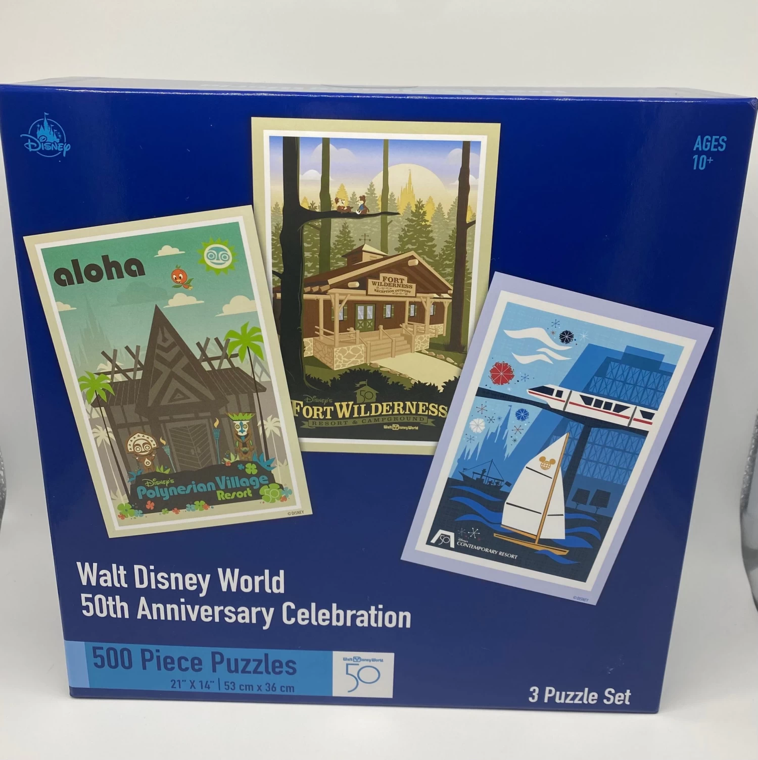 Disney Walt Disney World 50th Anniversary Celebration 3 X 500 Pieces Puzzle New