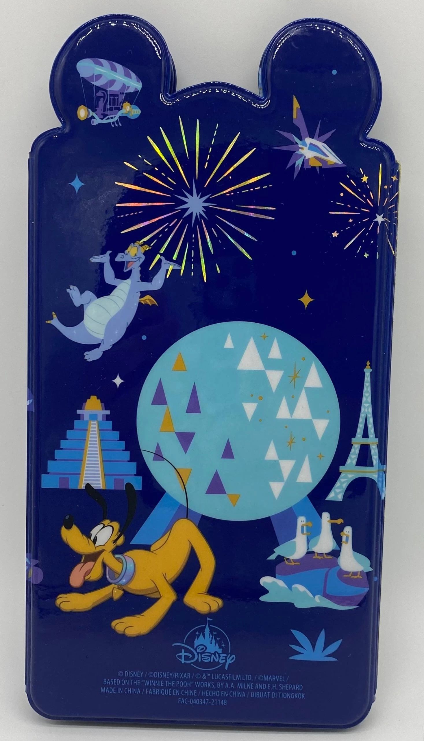 Characters include Mickey, Minnie, Donald, Goofy, Pluto, Chip, Dale, Orange Bird and Figment